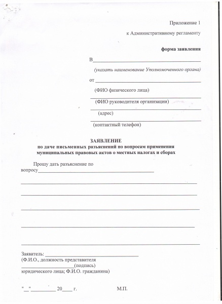→ административный регламента предоставления муниципальной услуги по даче письменных разъяснений налогоплательщикам по вопросам применения муници