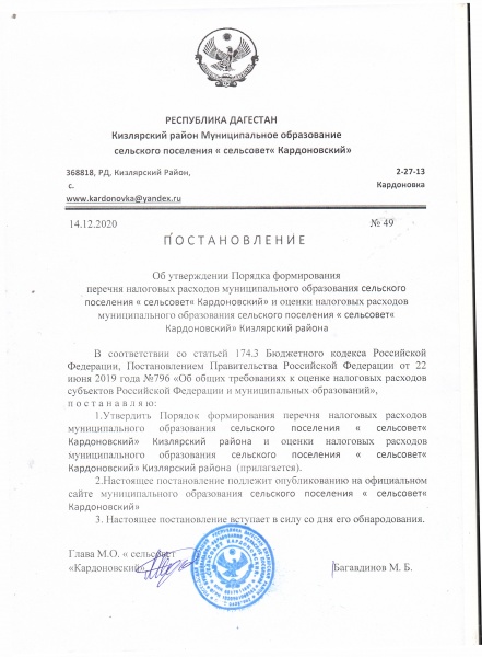 ПОСТАНОВЛЕНИЕ №49